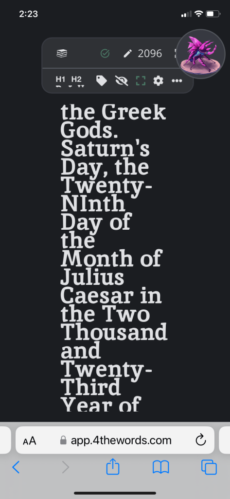 Then I pull up my file for the day on 4thewords.com (affiliate link).